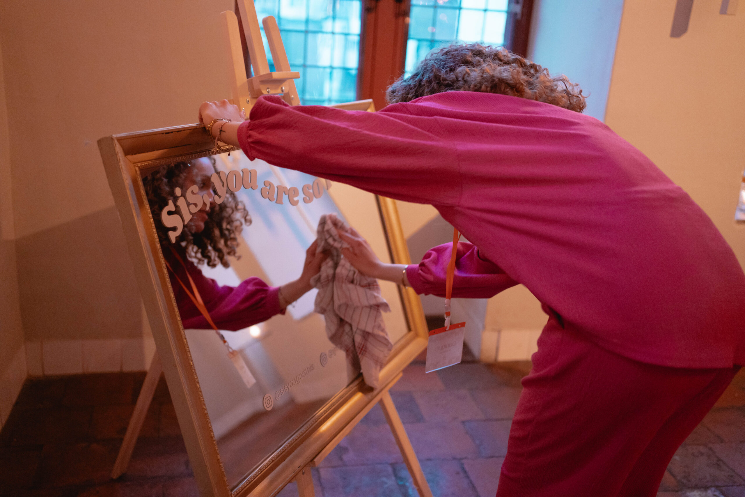 Als fotograaf had ik de eer om dit allemaal vast te leggen. Ik zag mensen die elkaar op het event leerde kennen en mensen die wat stiller waren in het begin en opbloeiden door de gesprekken die zij hadden. Een prachtige herinnering die ik mocht vastleggen, was het moment dat spreker Nelske vroeg of iedereen wilde gaan knielen en iedereen samen ging bidden. Haar woorden en de muziek en alles eromheen zorgde voor een prachtige inspirerende bijzondere sfeer en verbinding met elkaar. De een schreef iets in een boekje en de ander onderstreepte iets in de Bijbel. Allemaal luisterde ze op hun eigen manier naar het verhaal. De muziek en de perfect uitgekozen nummers voor dit thema raakte mij. Terwijl ik door mijn camera keek en de gezichten vol overgave en emotie vastlegde, voelde ik mij ontzettend dankbaar dat ik hierbij mocht zijn en dit als herinnering voor iedereen kon vastleggen. Niet alleen vanwege de beelden, maar vooral omdat ik getuige mocht zijn van een dag vol liefde, geloof en krachtige vrouwelijke verbondenheid!